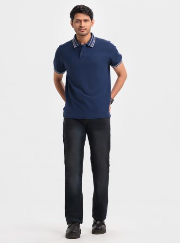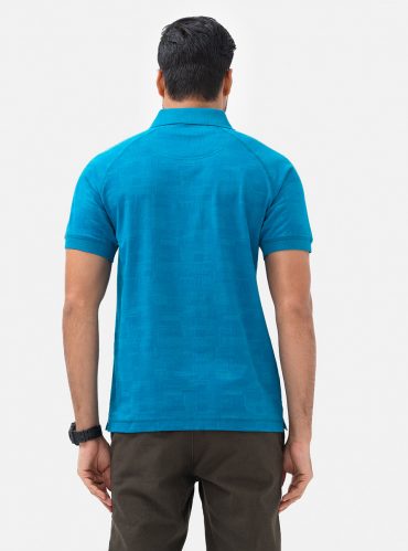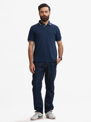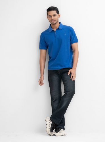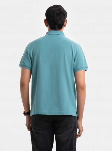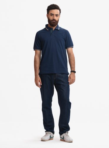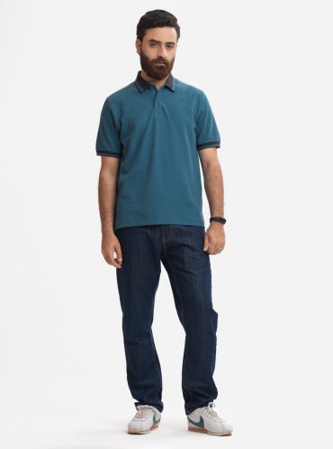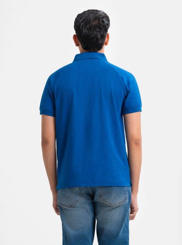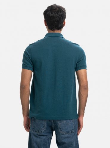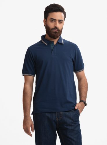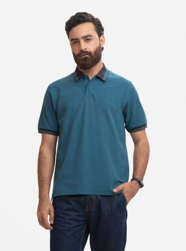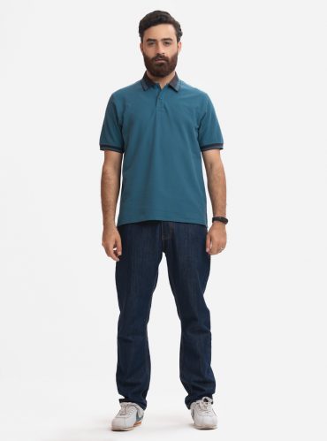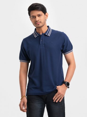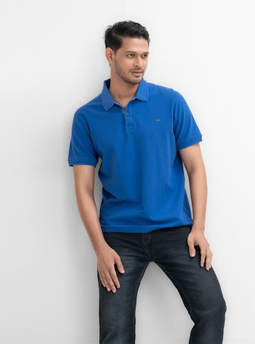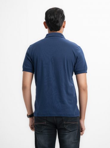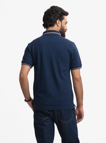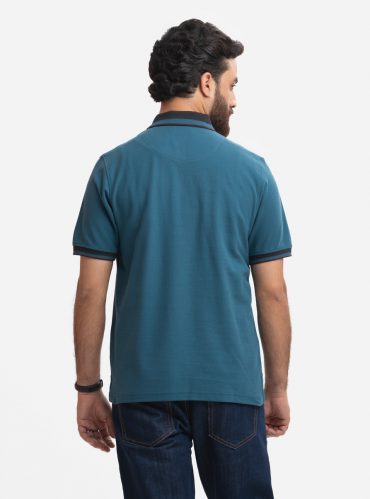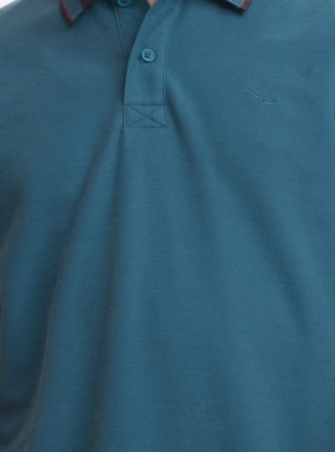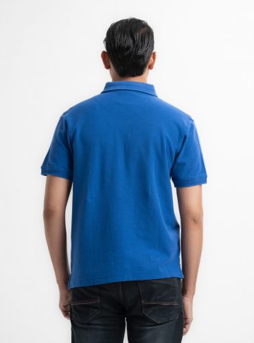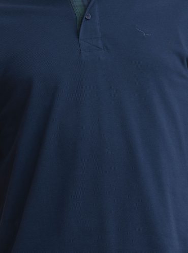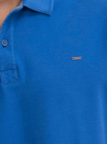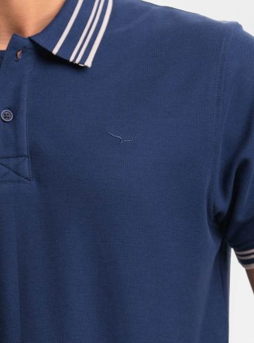 Blue Polo Shirt in Cotton Pique fabric. Designed with a classic collar and short sleeves. Contrast tipping at the collar and cuffs. Metal logo attached on the chest.