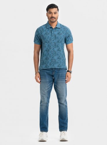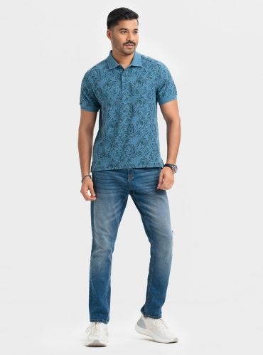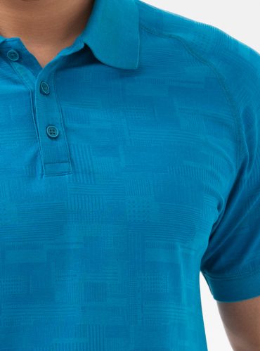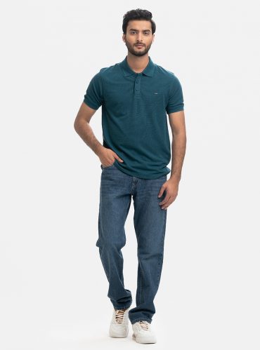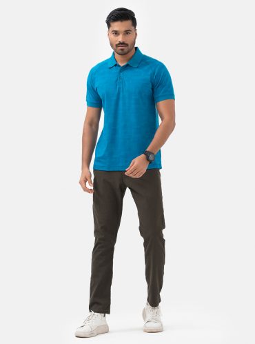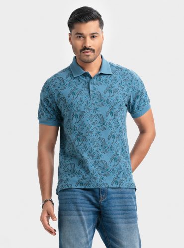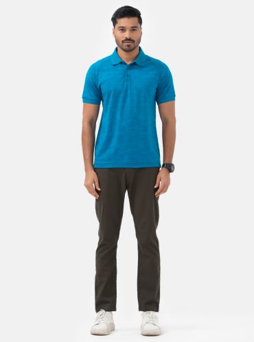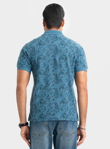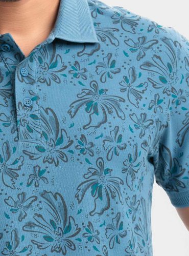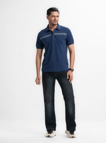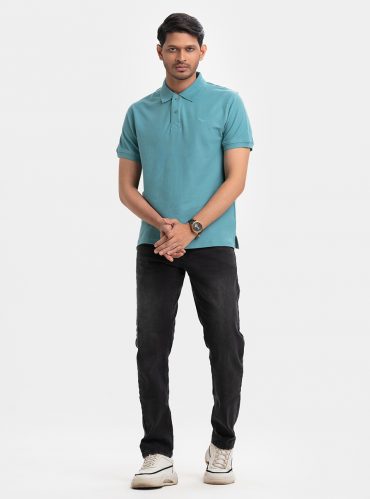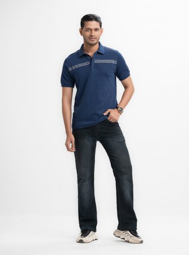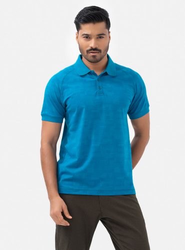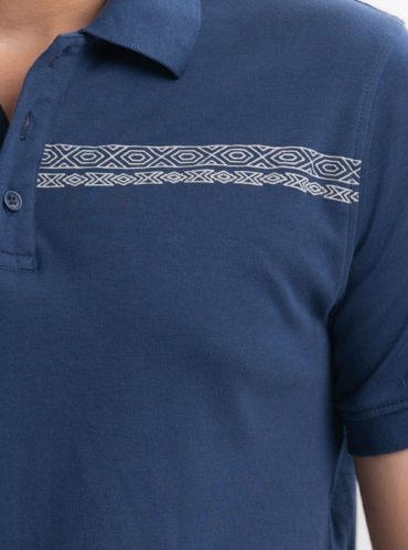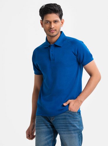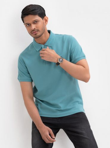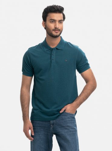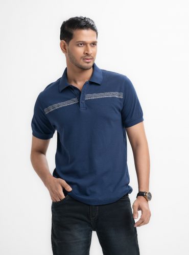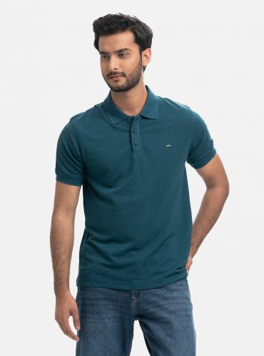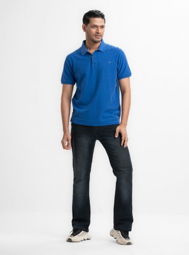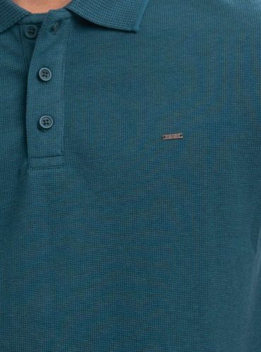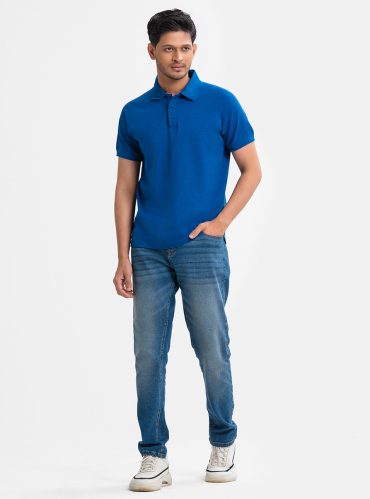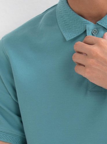 Blue Polo Shirt in Cotton Pique fabric. Designed with a classic collar and short sleeves. Contrast tipping at the collar and cuffs. Metal logo attached on the chest.