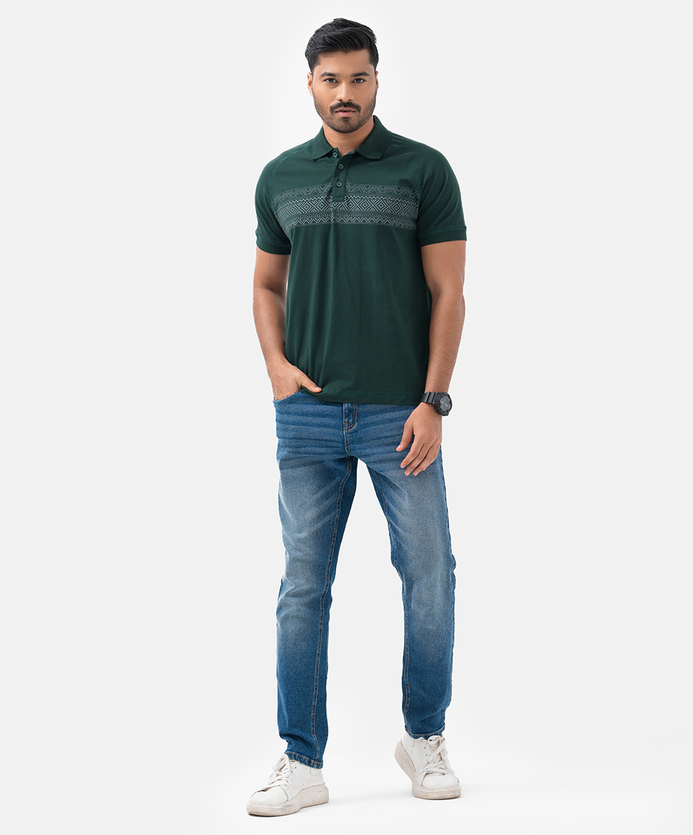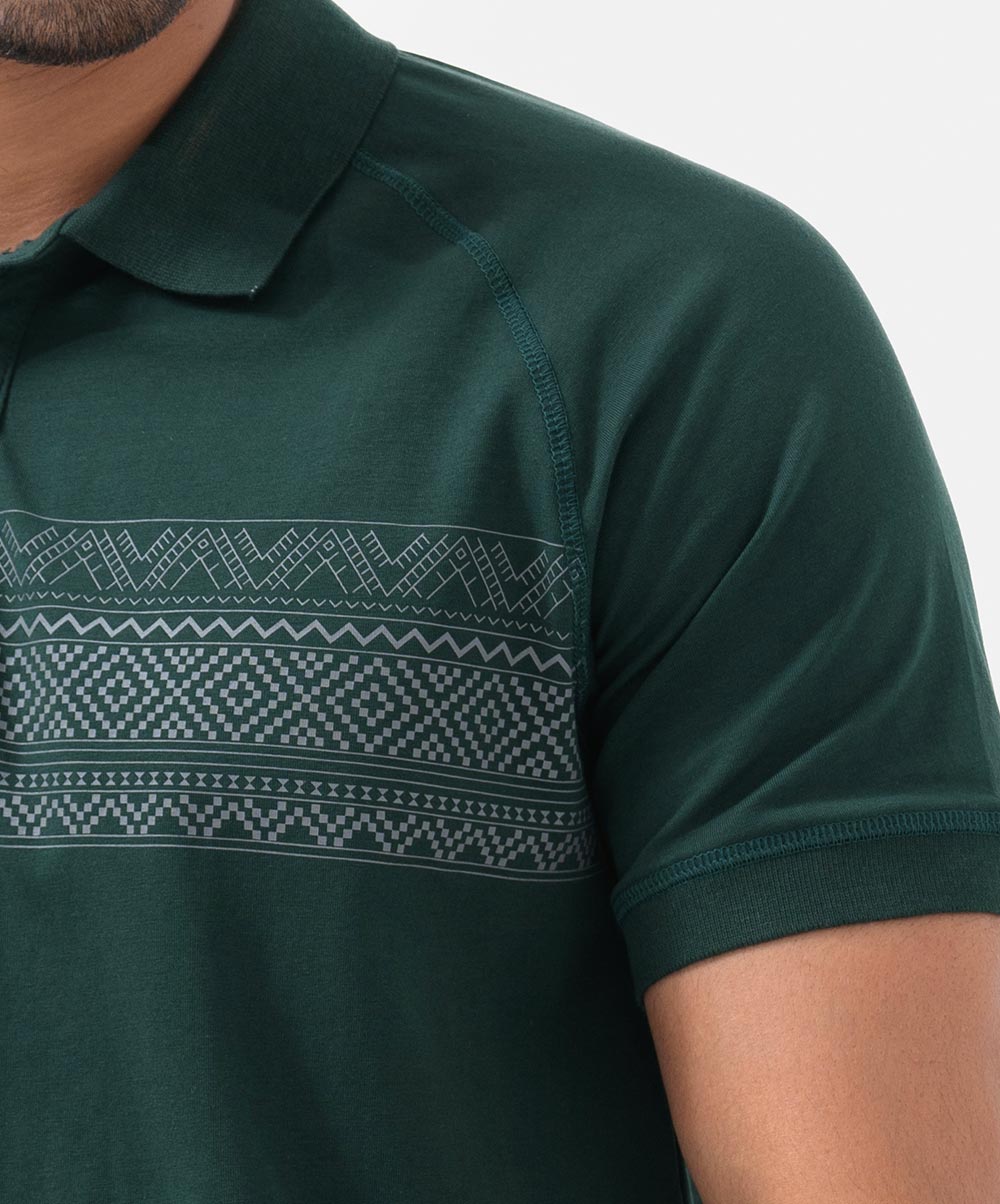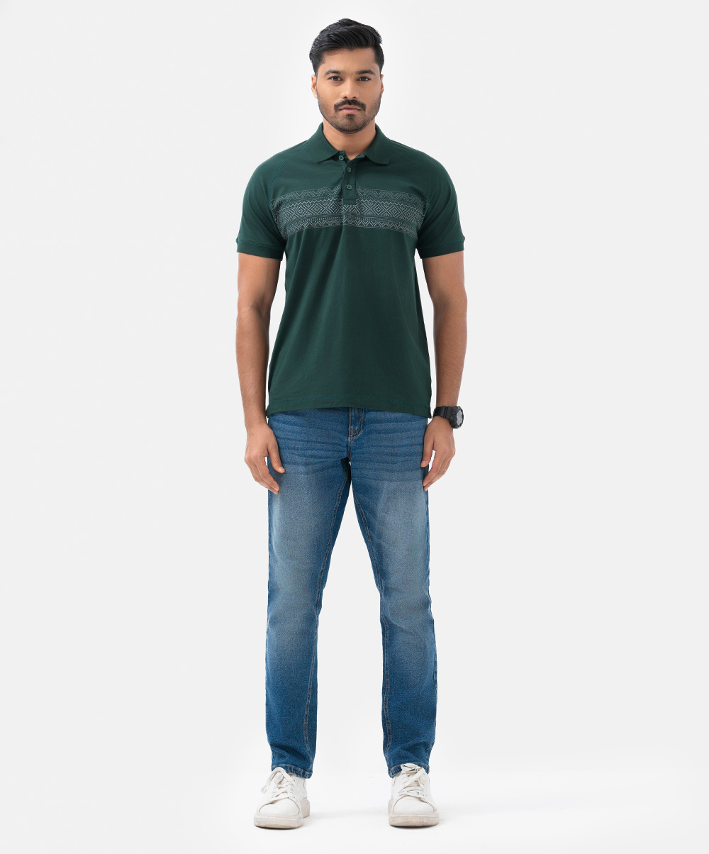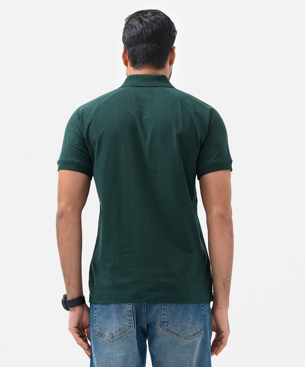 Green Stretchable Cotton Short Sleeve Polo