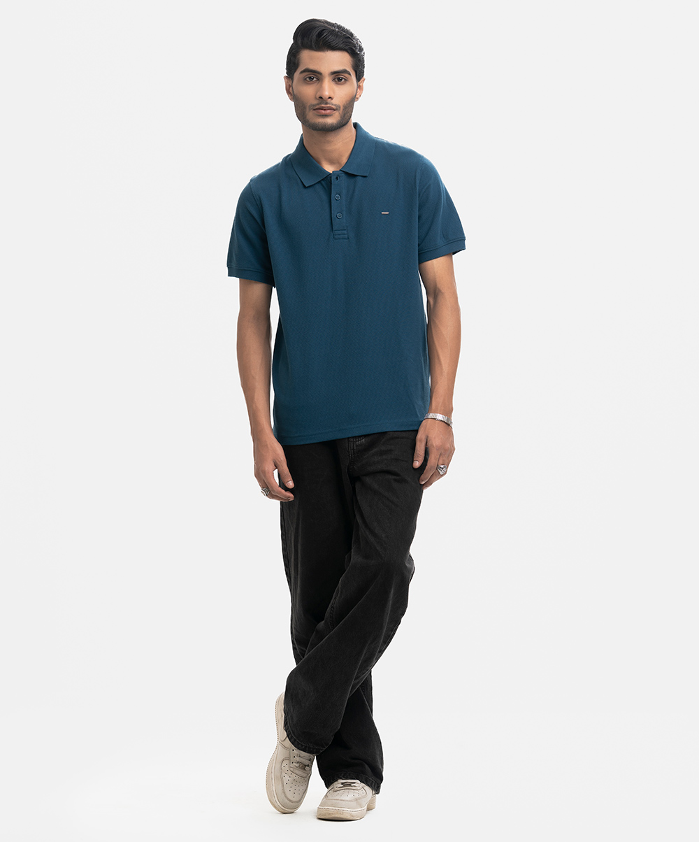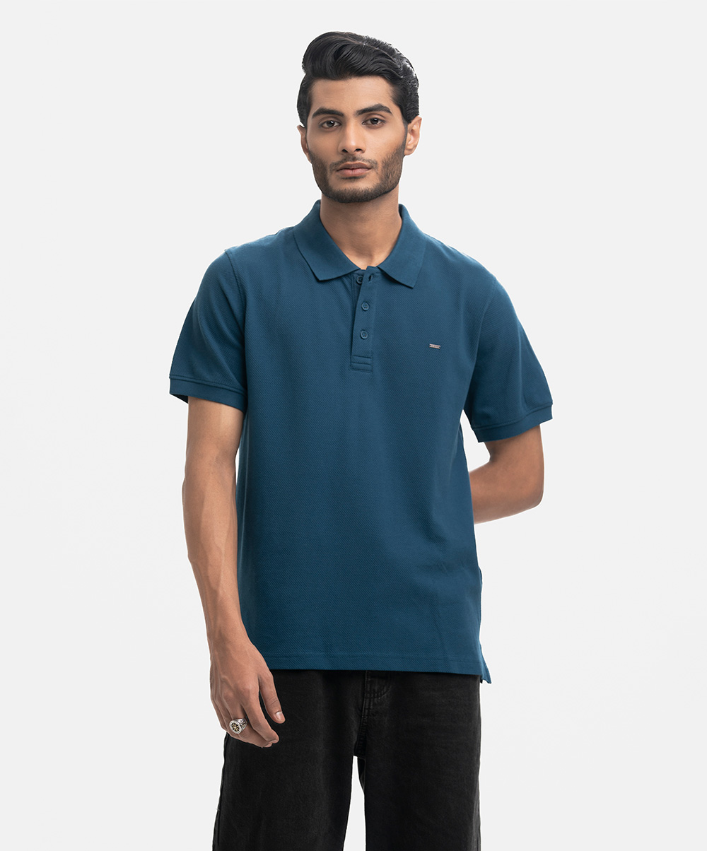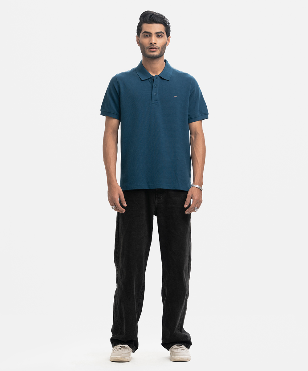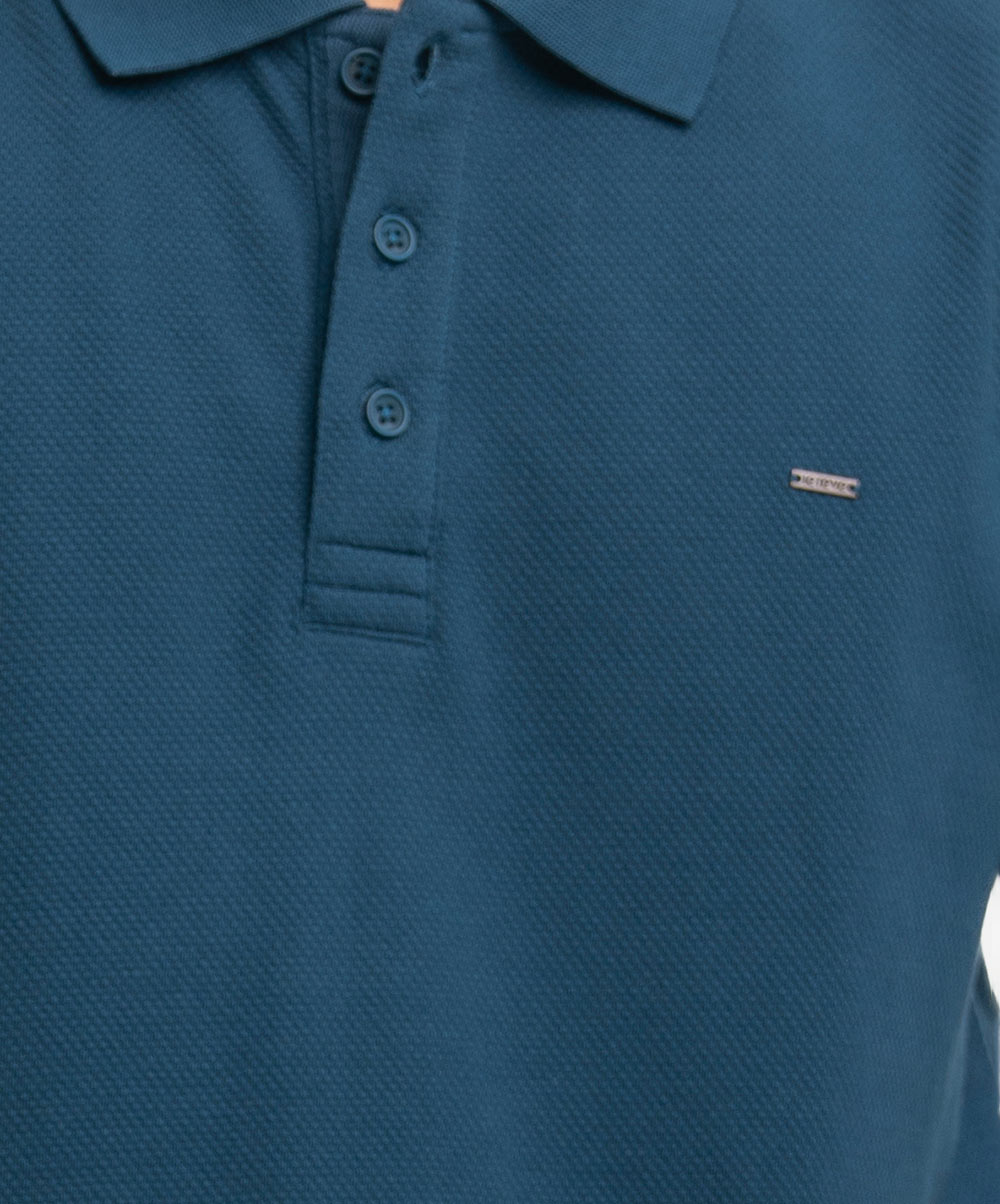 Men’s polo in cotton bubble knit fabric. Classic rib collar, short sleeves with straight hem.