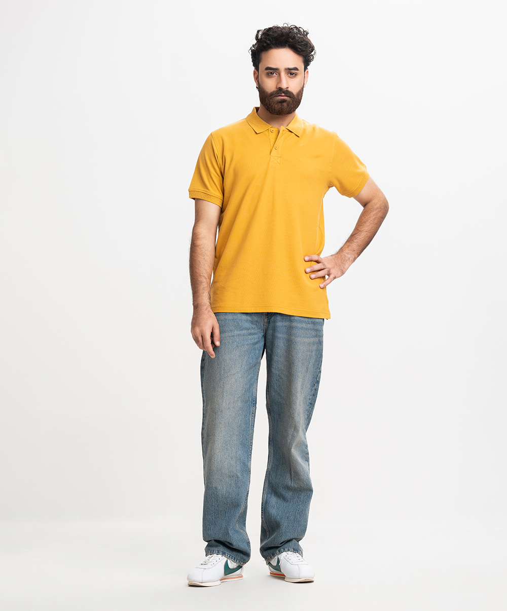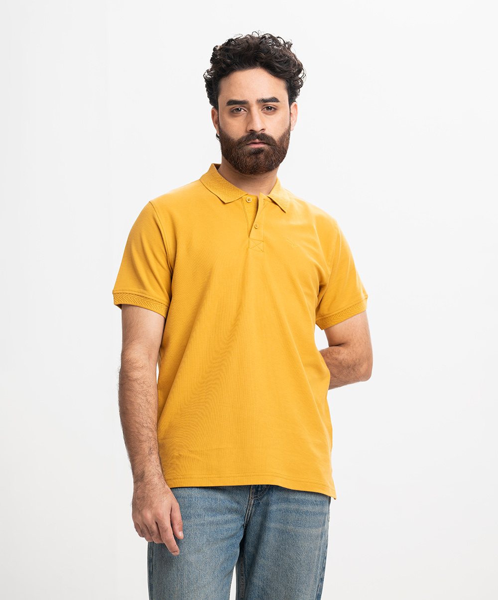 Men’s polo in stretchable cotton pique fabric. Classic rib collar, short sleeves with straight hem.