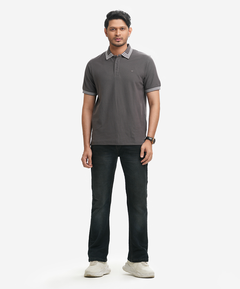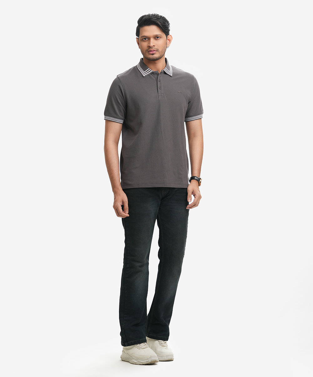 Men’s polo in stretchable cotton pique fabric. Classic rib collar, short sleeves with straight hem.