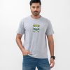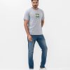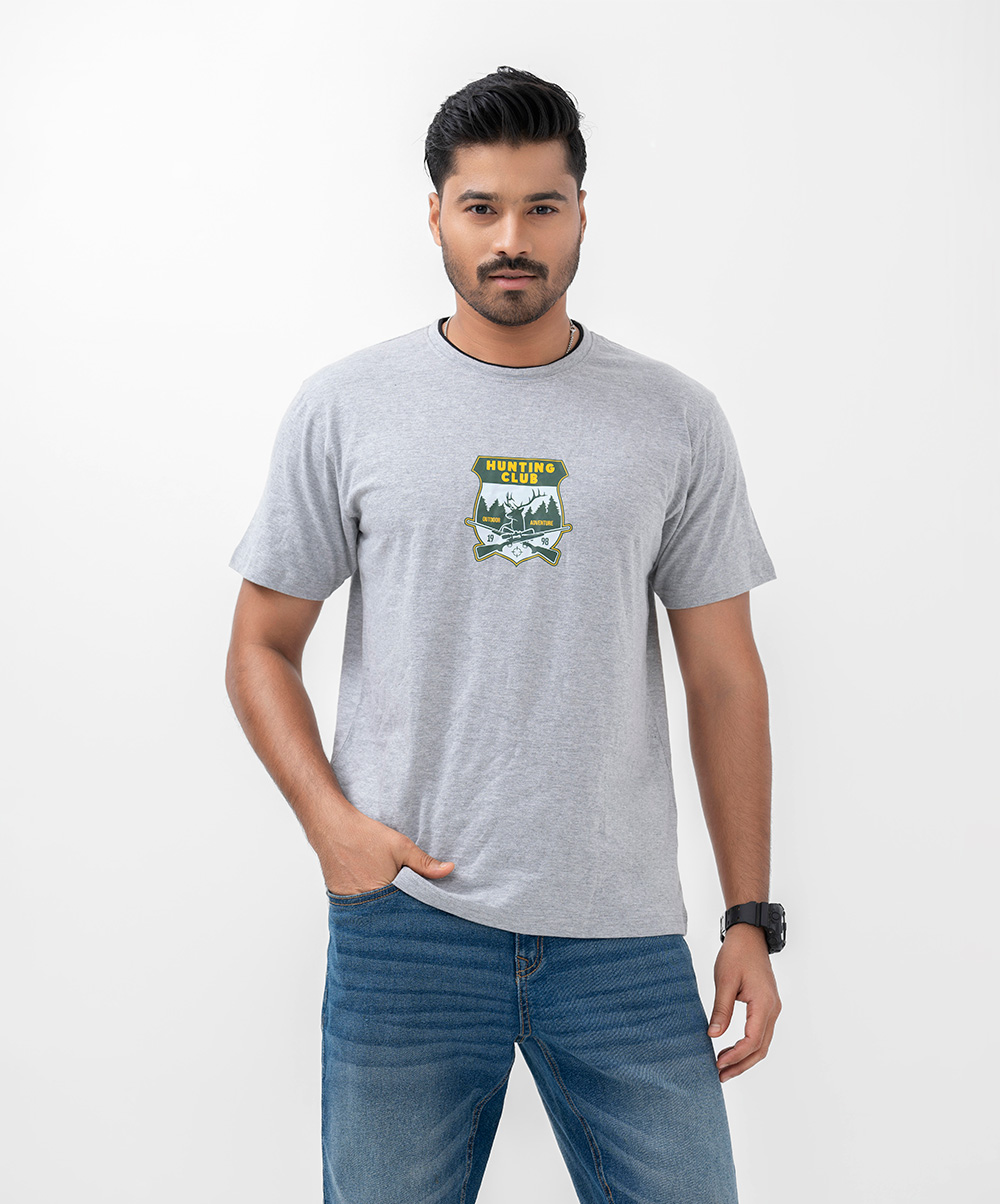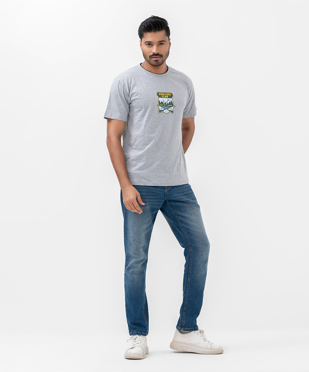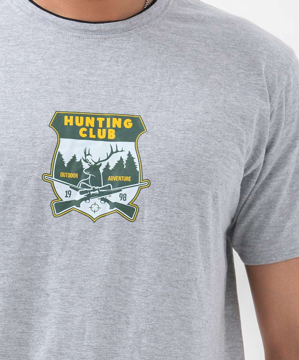 Men’s crew neck blue T-shirt in cotton fabric. Short-sleeved and adventure-inspired print on the chest.