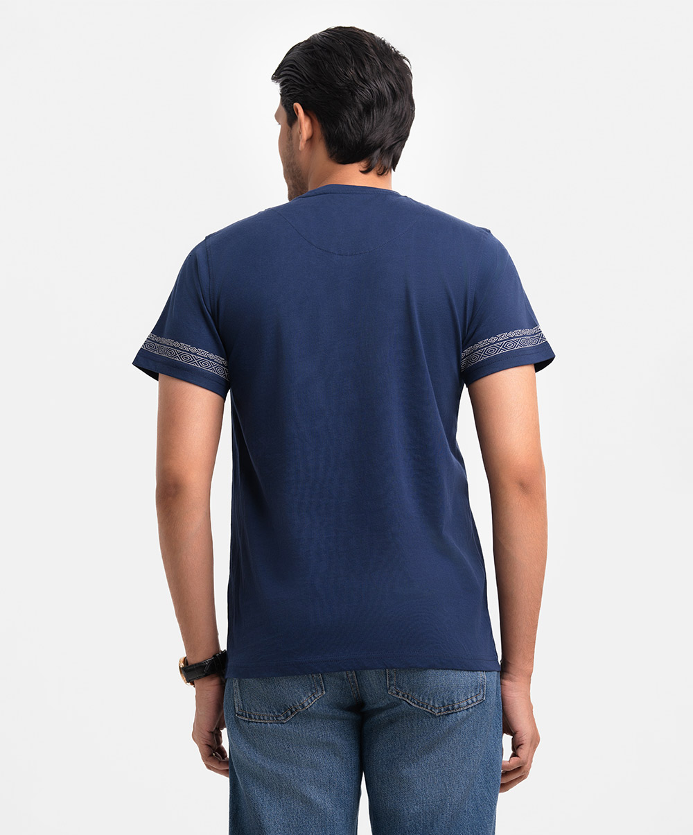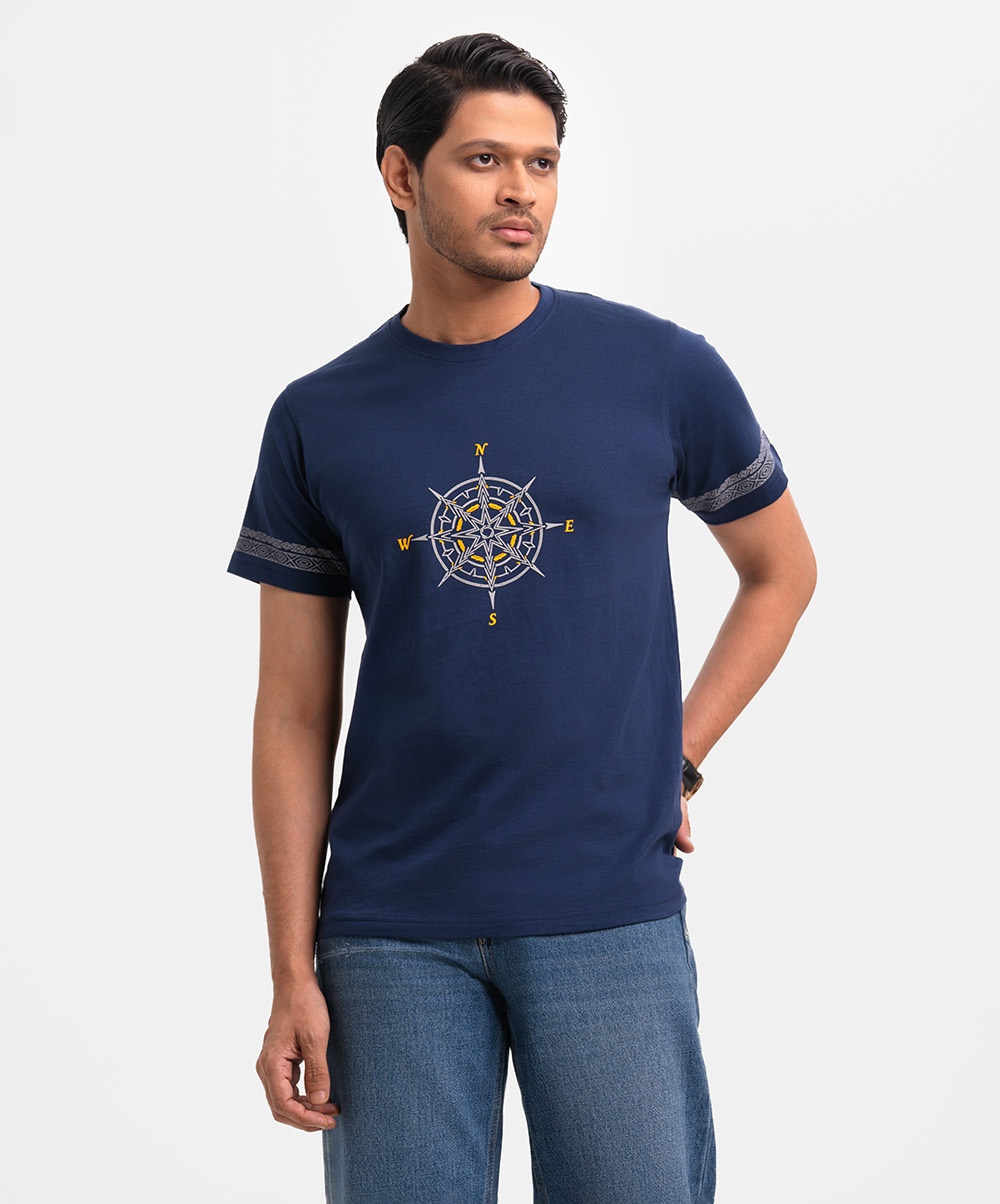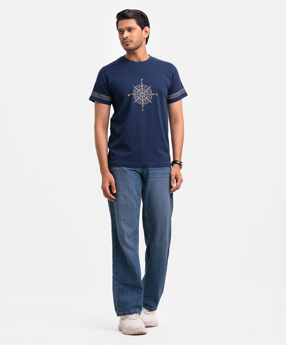 Blue Cotton Short Sleeve T-shirt