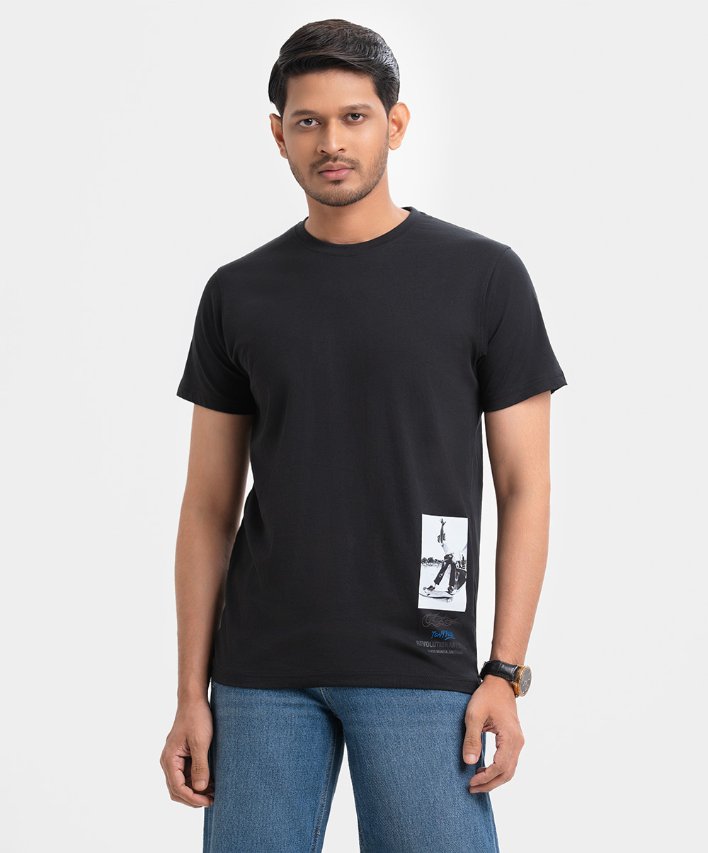 Men’s t-shirt in cotton single jersey fabric. Crew neck, short sleeves. Revolutionary style print details on the hemline.