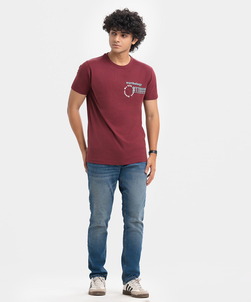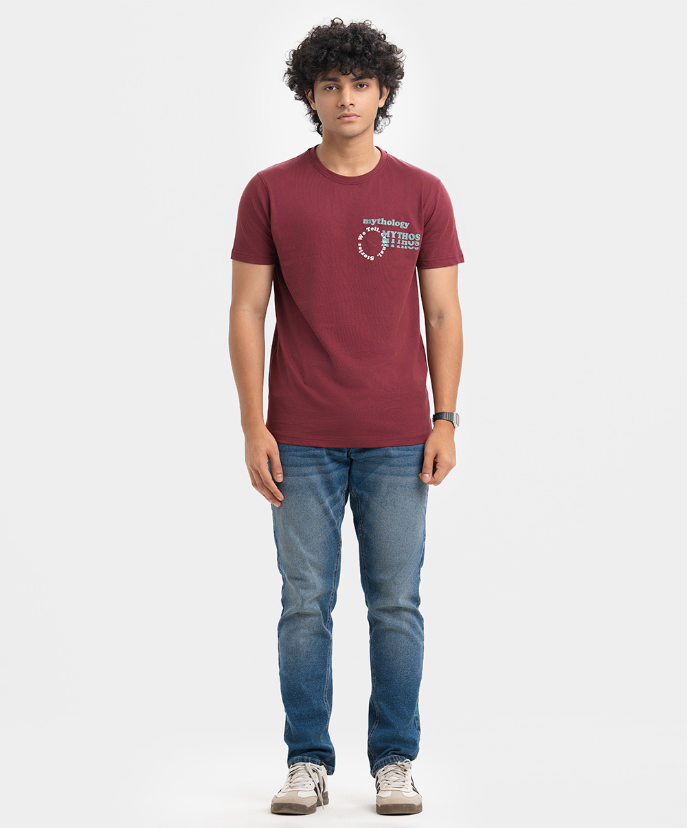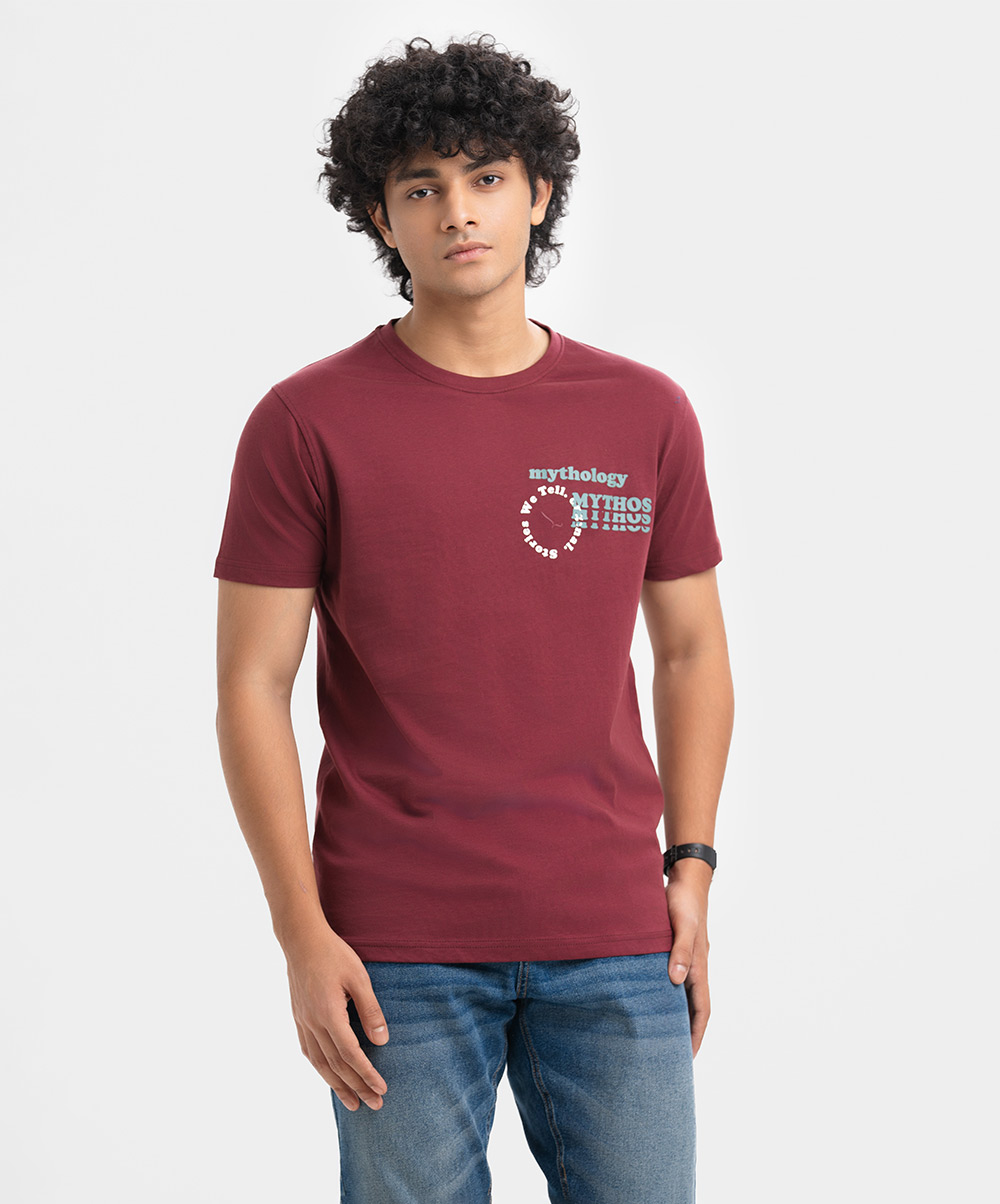 Men’s round neck t-shirt in cotton single jersey knit fabric.Short sleeves and print on the chest.