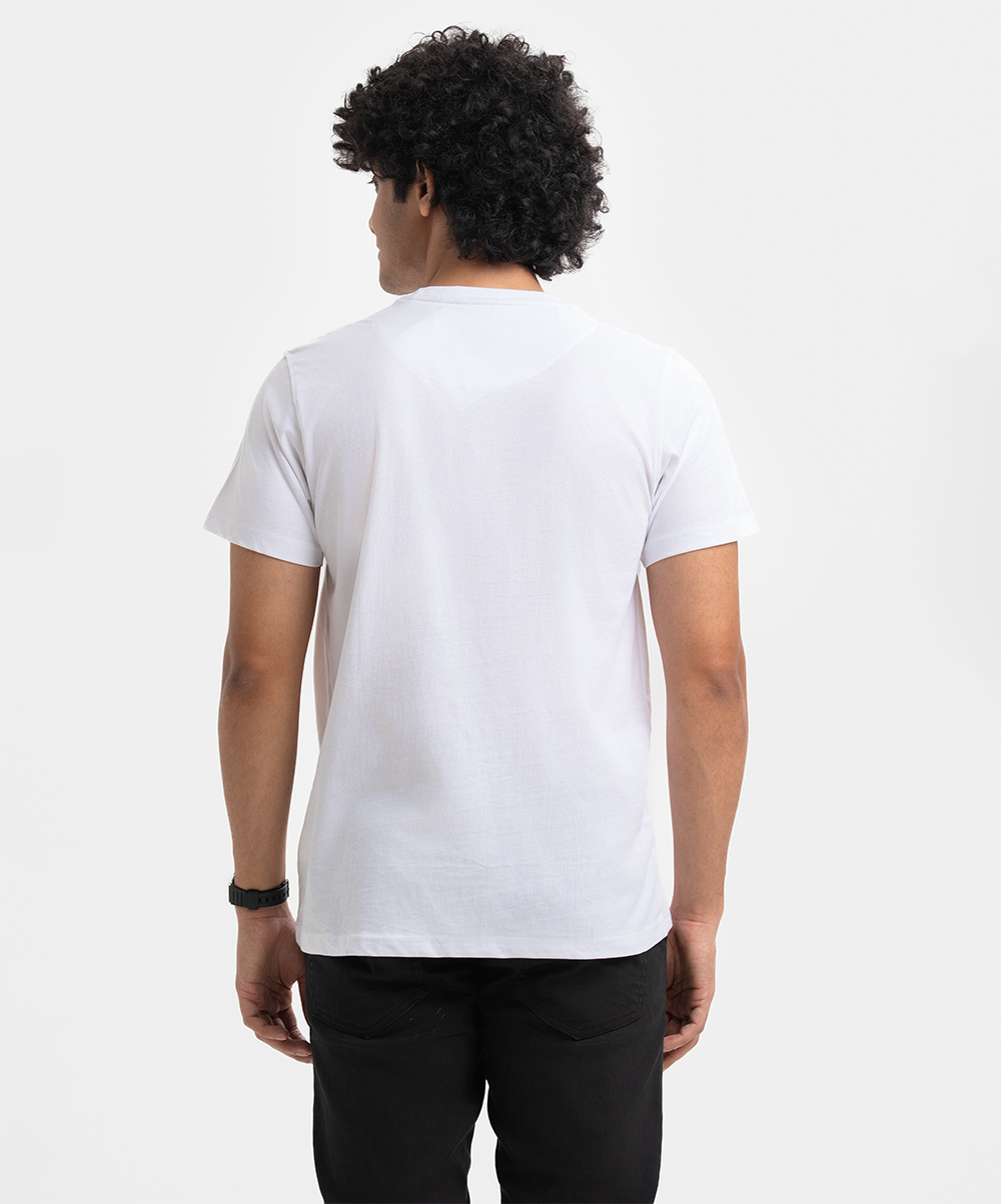 Men’s round neck t-shirt in cotton single jersey knit fabric. Short sleeves and a chest pocket with print.