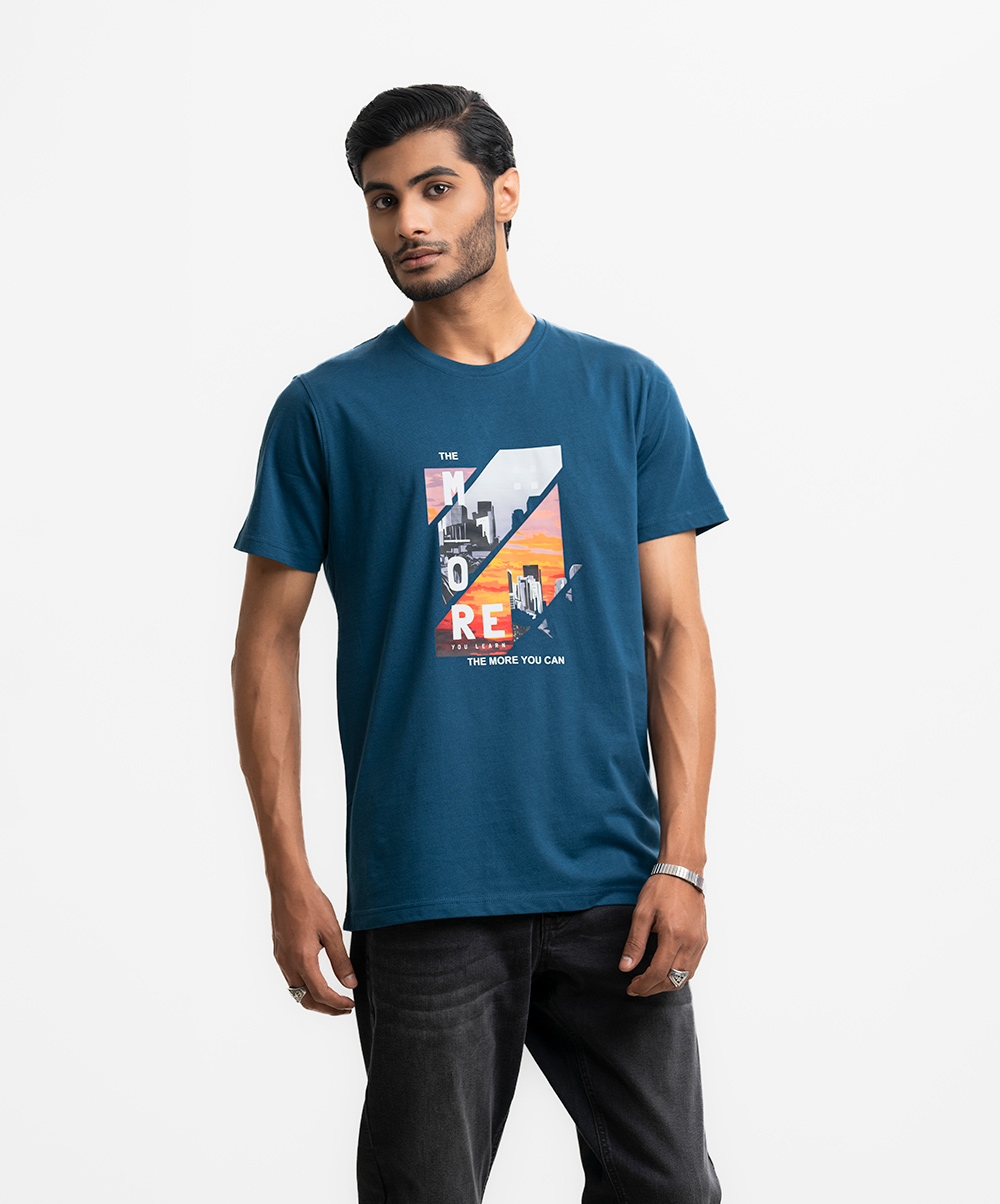 Blue Cotton Short Sleeve T-shirt