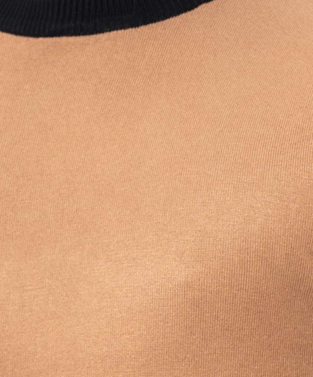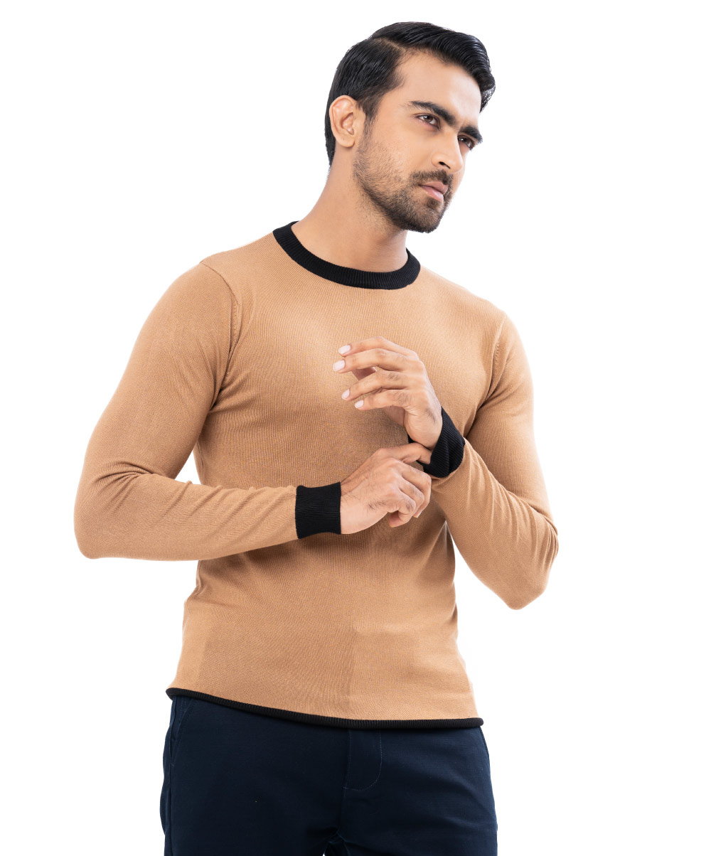 Brown Sweater in Cotton knit fabric. Round neck and long sleeves. Ribbed neckline, cuffs, and hem.