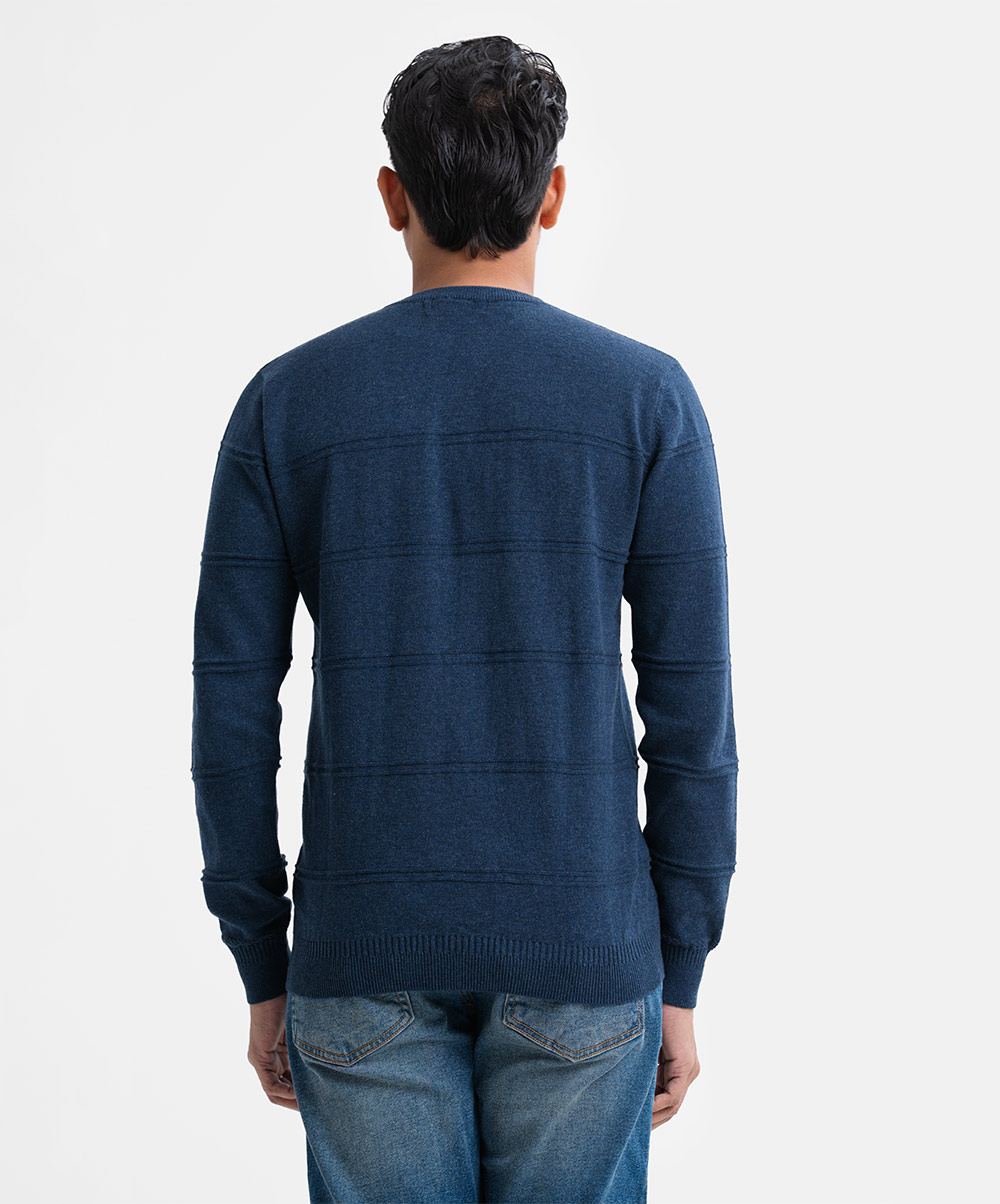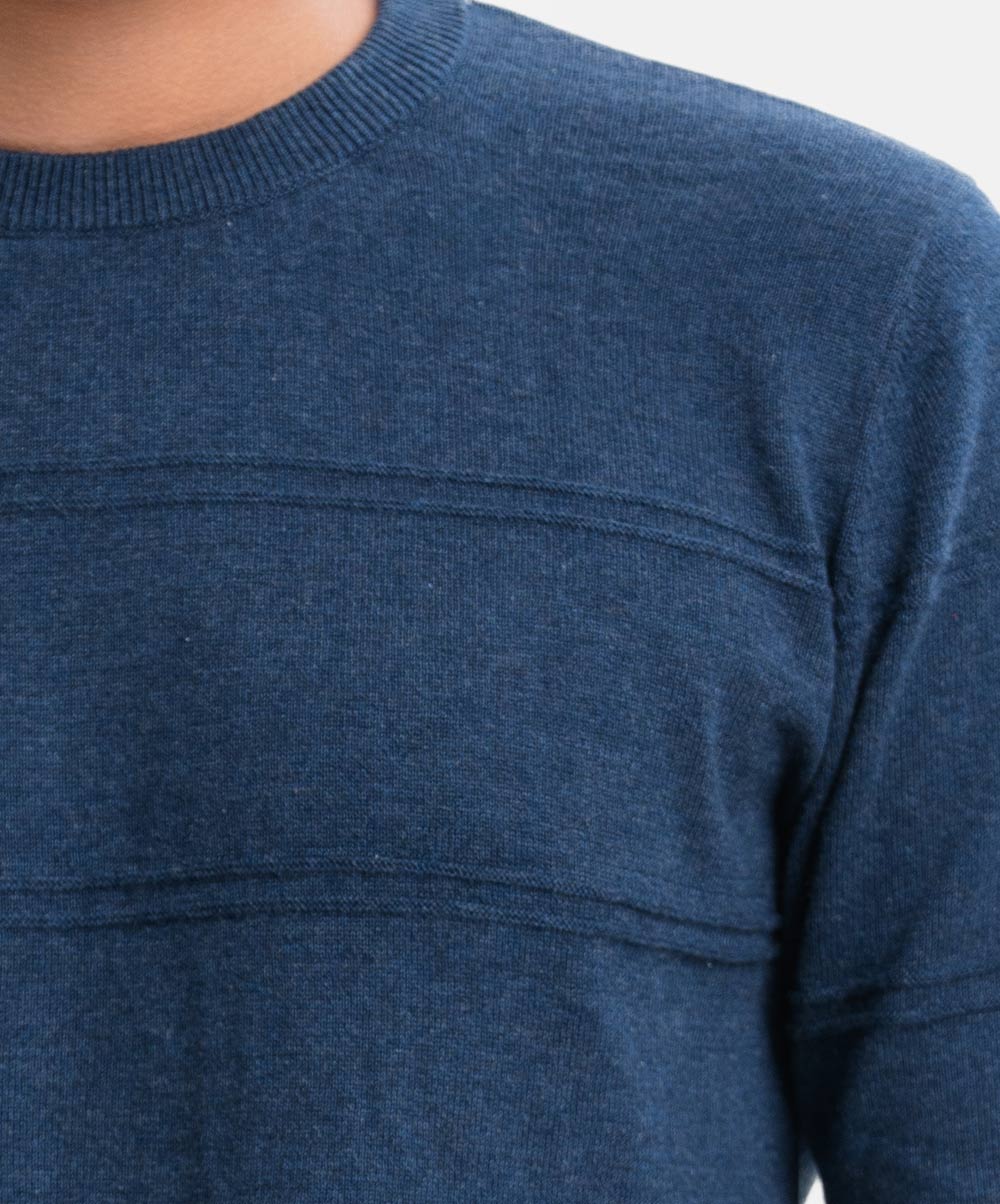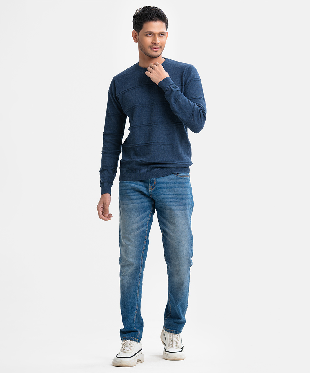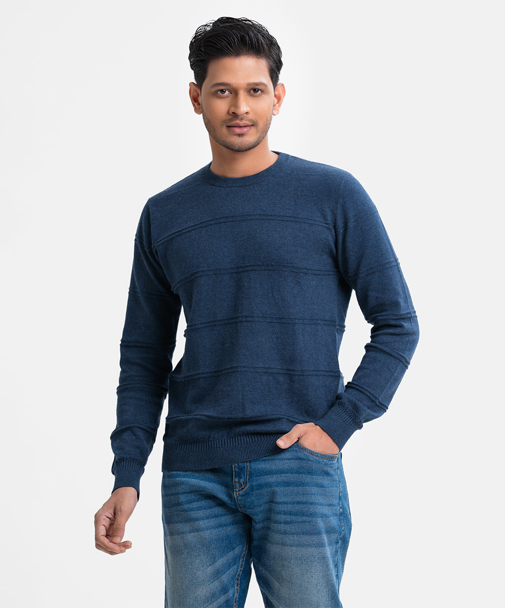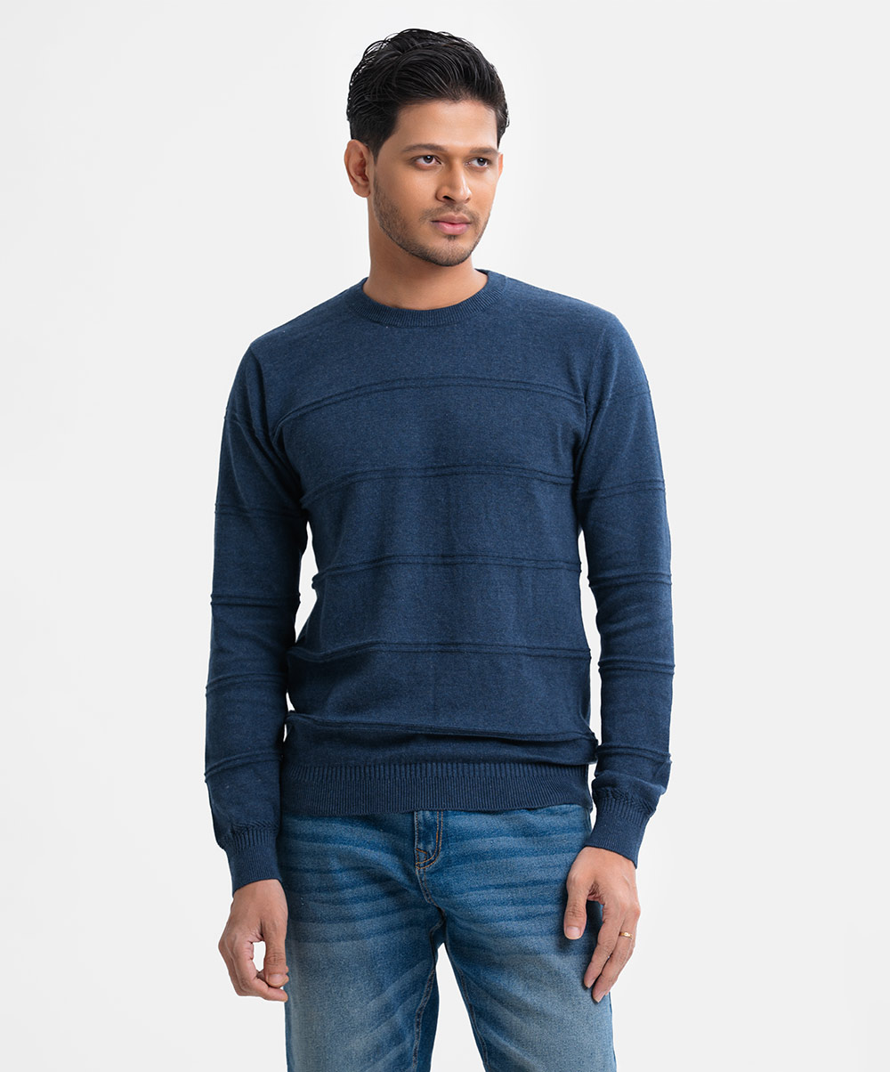 Men’s winter sweater in blended cotton knit fabric. Round collar, full sleeves, and a straight hem. Featuring narrow ribbing at the cuffs and hem.