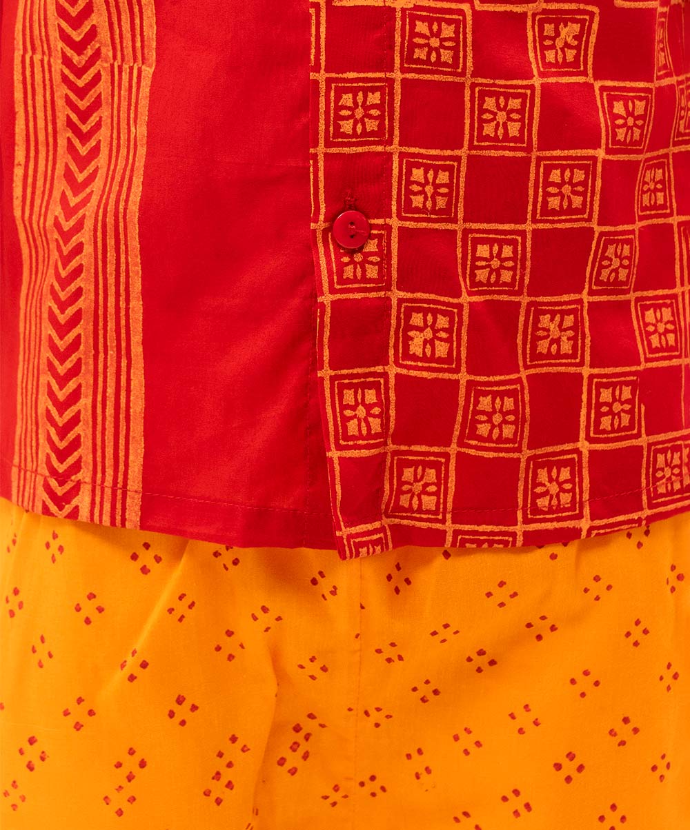 Red Cotton Newborn Fotua Pant Set