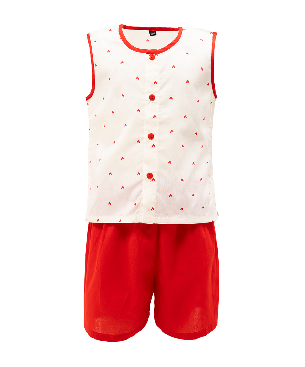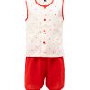 Newborn baby boys’ printed nima pant set in cotton fabric. Round neck, sleeveless and button fastening at the front. Paired with a short pant.