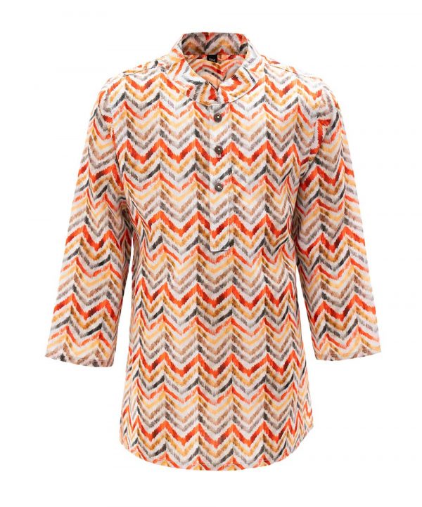 Newborn baby boy printed panjabi in cotton fabric. Mandarin collar, inseam pockets and long sleeves.