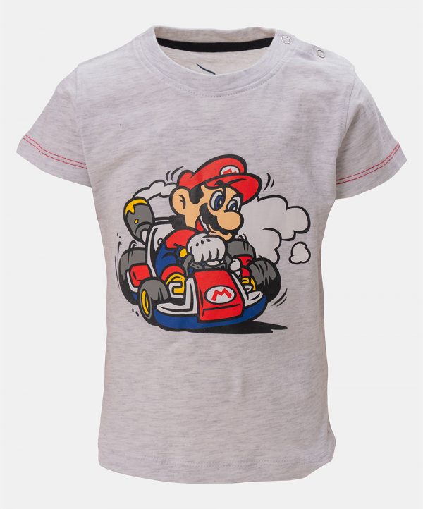 New born baby boys t-shirt in soft cotton knit fabric. Round neck with side opening and short sleeves.