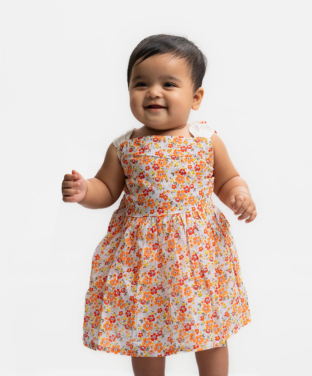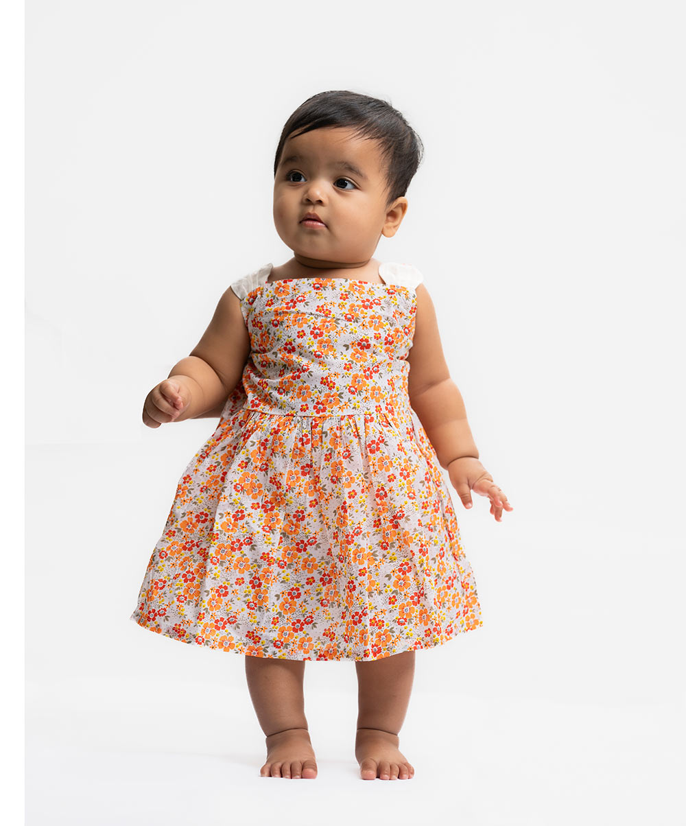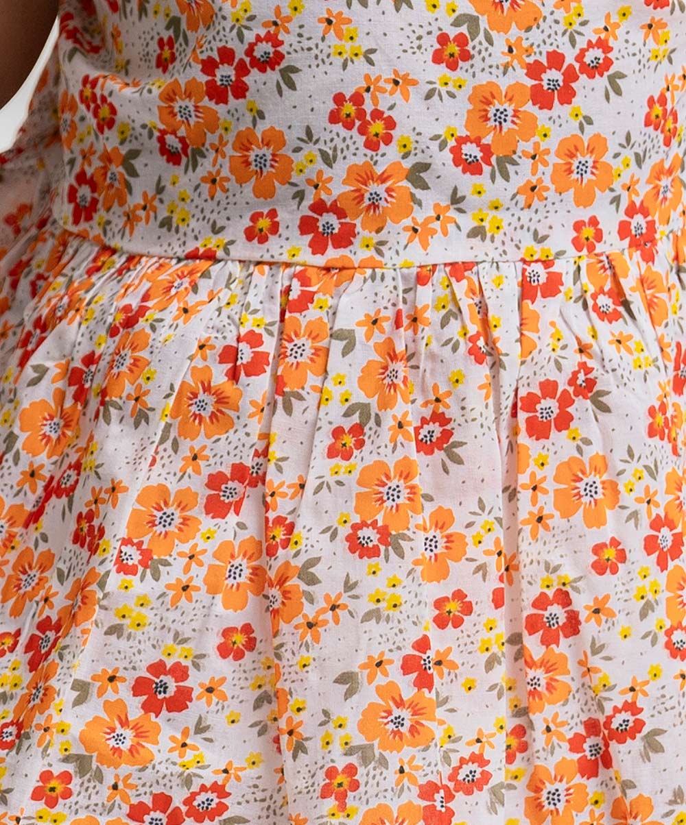 White & Orange Cotton A-line Frock