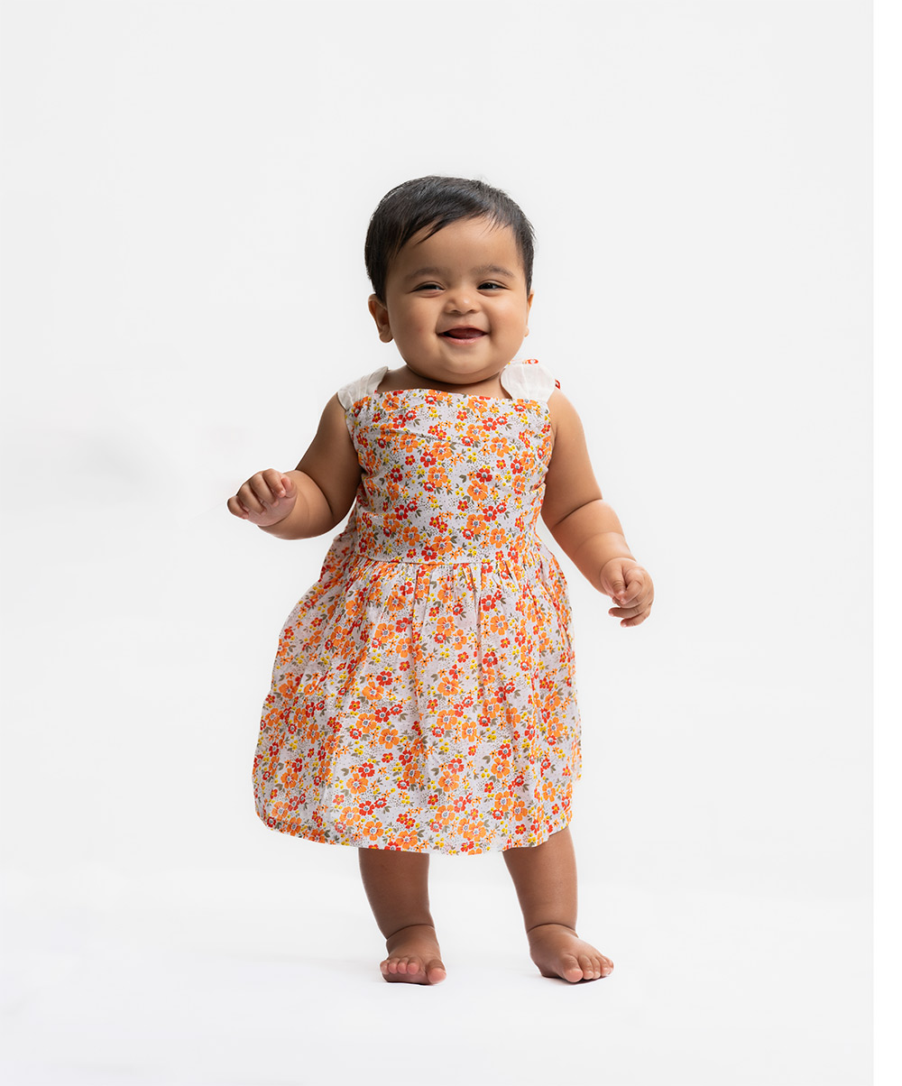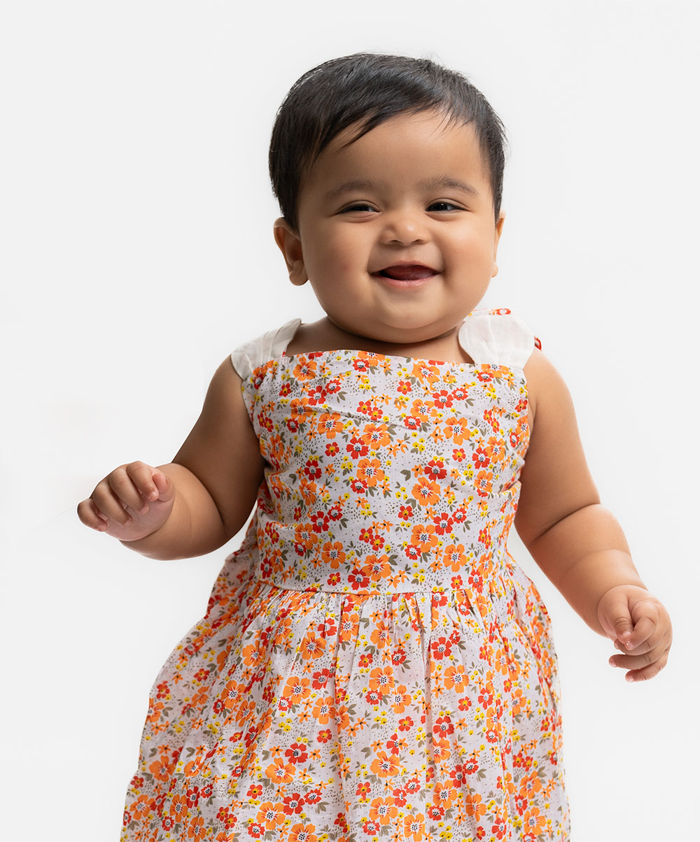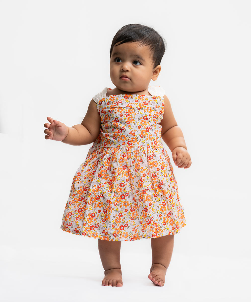 White & Orange Cotton A-line Frock