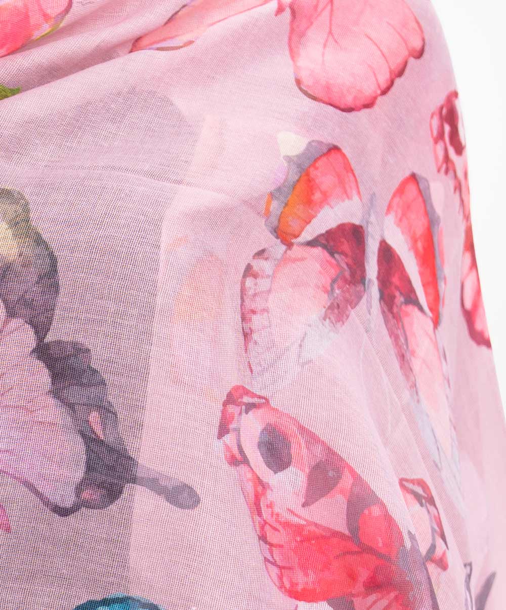 Women’s printed scarf in blended cotton fabric. Fringe trim at the border.
