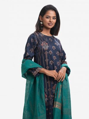 Blue all-over printed Salwar Kameez in Georgette fabric with karchupi.