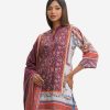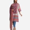 Women’s salwar kameez in printed cotton fabric. Mandarin collar, three-quarter sleeves and karchupi & lace at the front of kameez. Cotton dupatta with pant-style pajama.