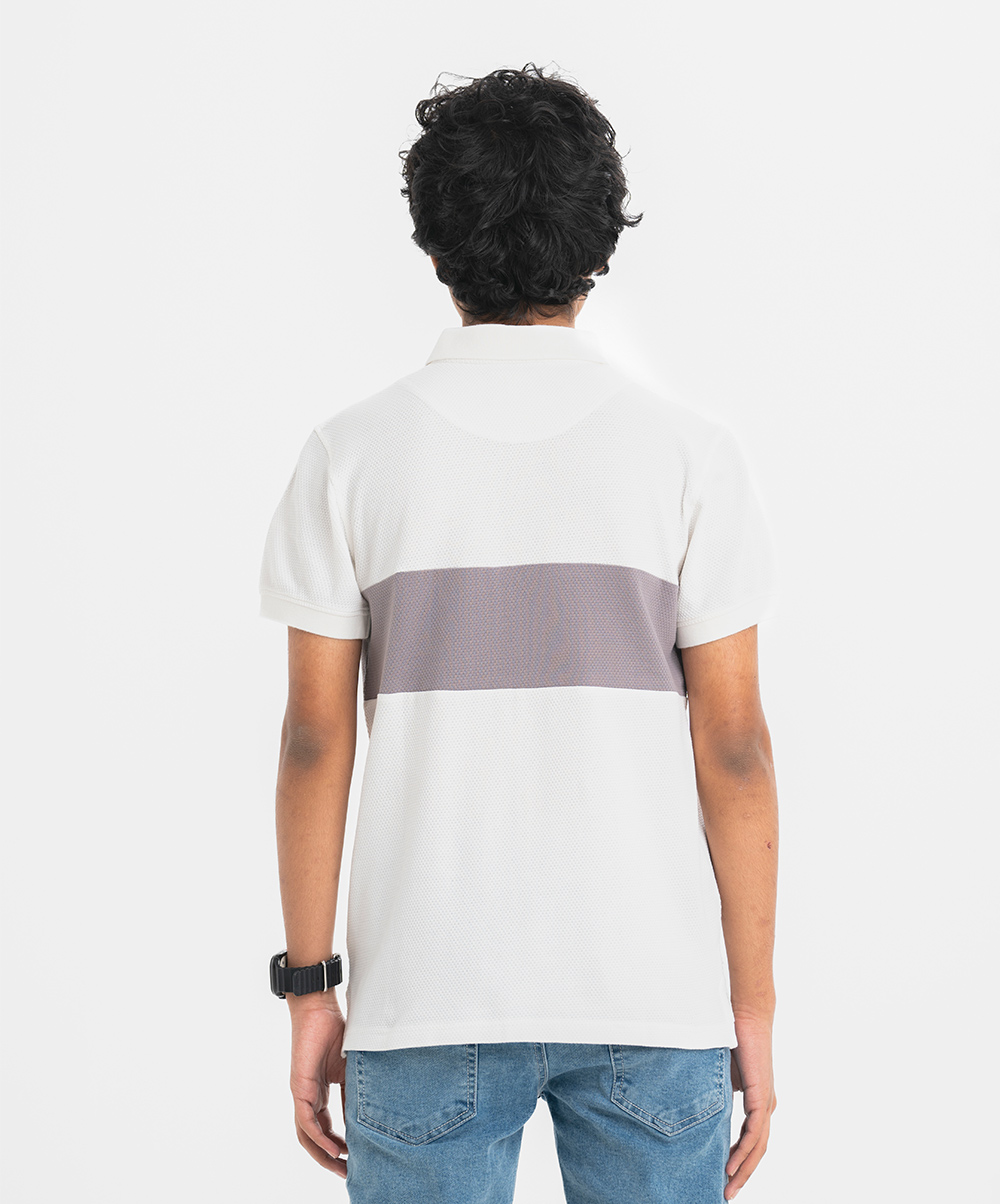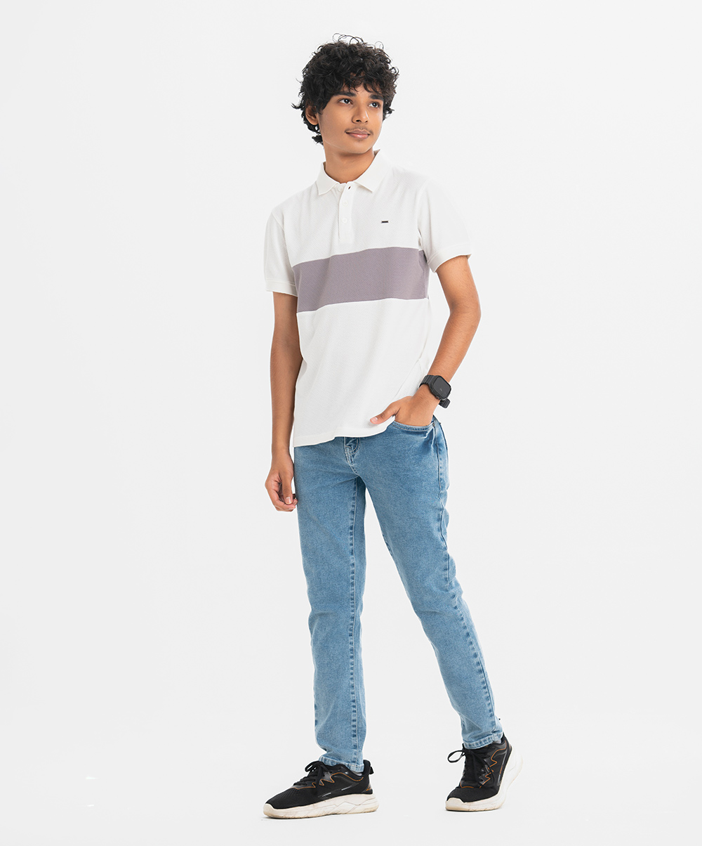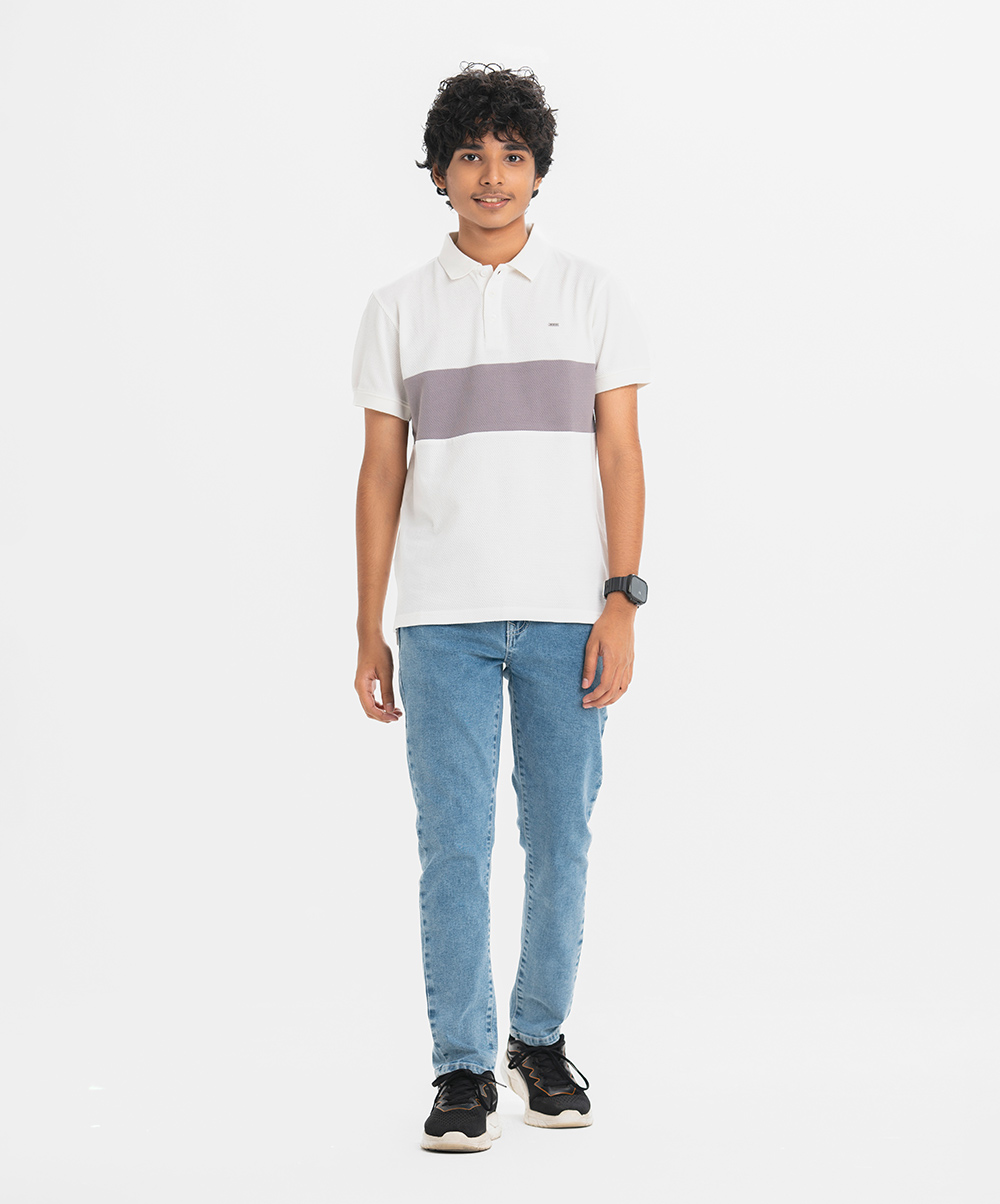 Teen boy’s short-sleeved polo in bubble knit fabric. Rib collar with straight hem.