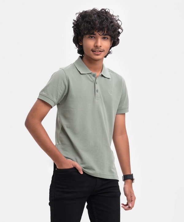 Teens cotton knit polo shirt with a classic collar and short sleeves.