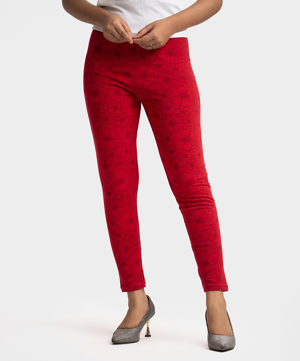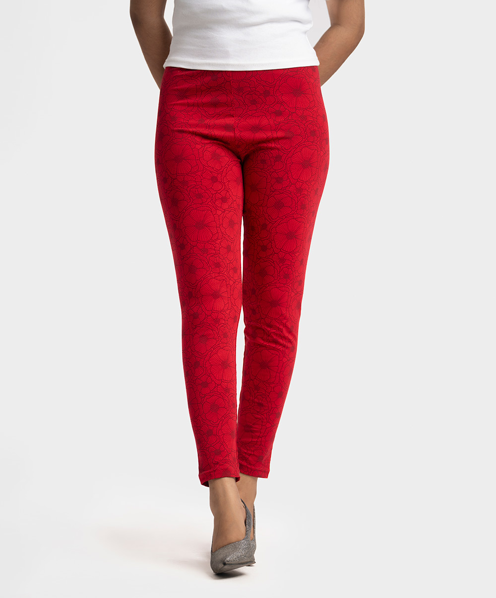Teen girl’s all-over floral printed leggings in cotton knit fabric. Concealed elasticated waistline.