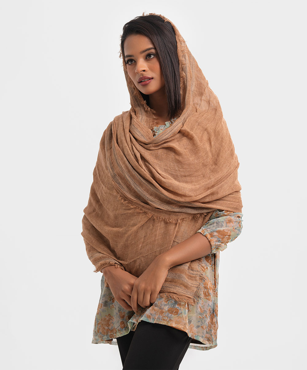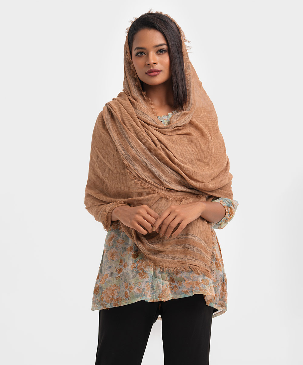 Unisex single color winter scarf or muffler in cotton-blended fabric.