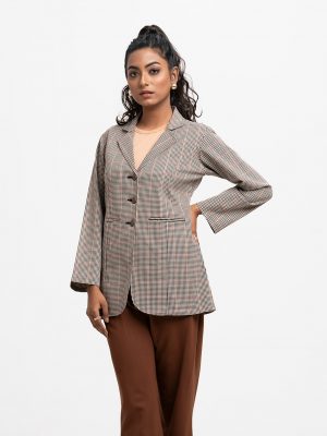 Brown Flannel Houndstooth Blazer