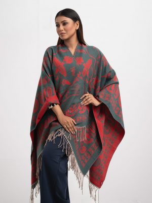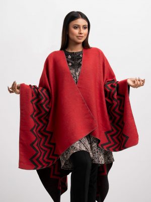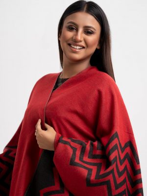 Red & Black Woolen Poncho