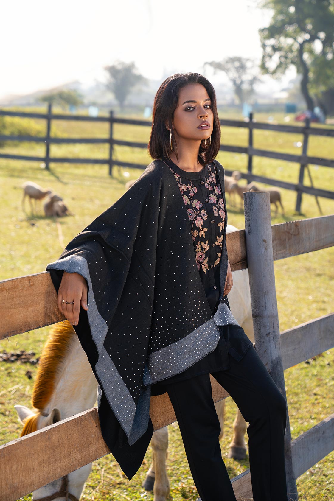 - পঞ্চোর নিচে বেসিক লেয়ারের জন্য একটু গাড় রঙের পোশাক বেছে নিলে ভালো। আর বটম ফিটেড হলেই ভালো।