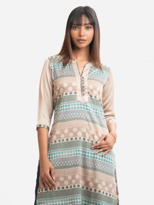 Beige Viscose straight Kameez