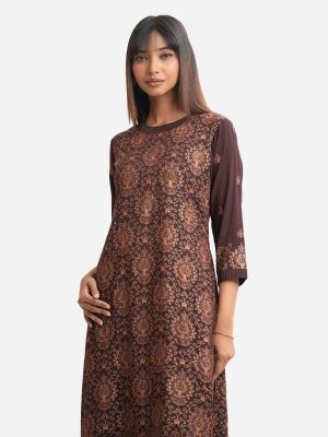 Brown Viscose Straight Kameez