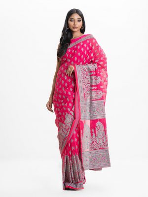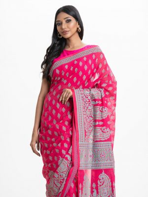 Pink Georgette Gown with Muslin Koti