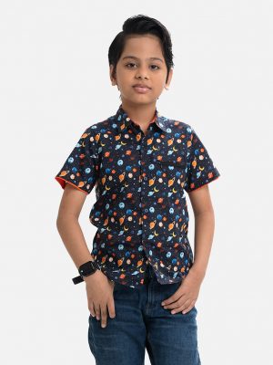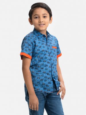 Blue Cotton Kids Casual Shirt