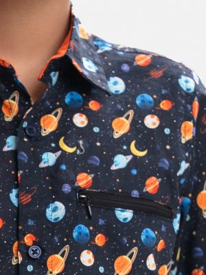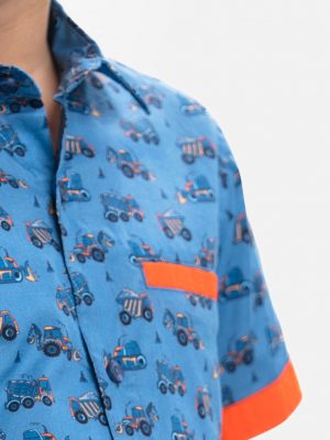Blue Viscose Kids Short Sleeve Shirt