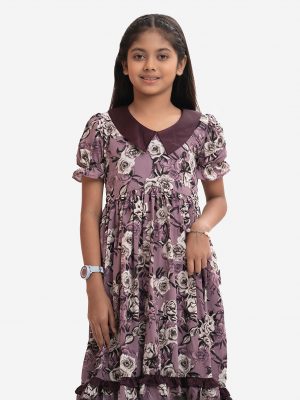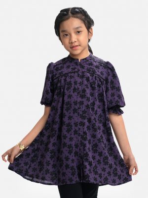 Purple Georgette A-line Kids Tunic