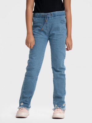 Blue Denim Frayed Cuff Pant