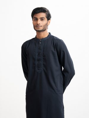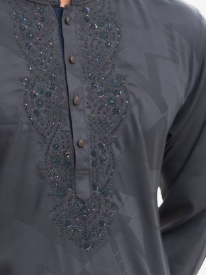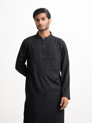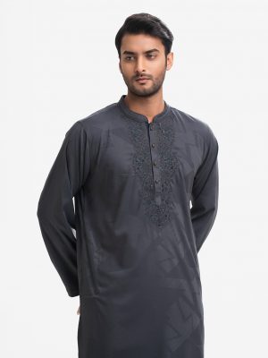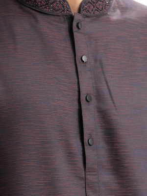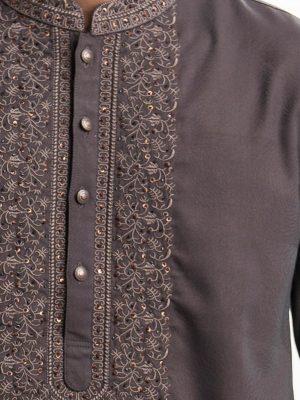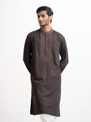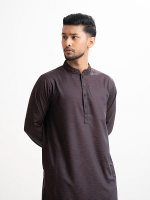 Brown Bamboo Jacquard Semi Fitted Panjabi