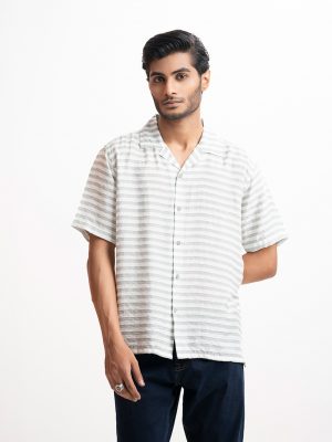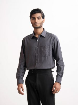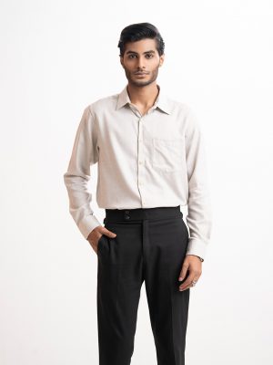 White Cotton Jacquard Long Sleeve Formal Shirt
