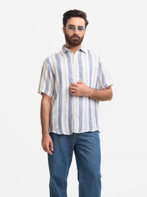 Blue Cotton Jacquard Long Sleeve Formal Shirt