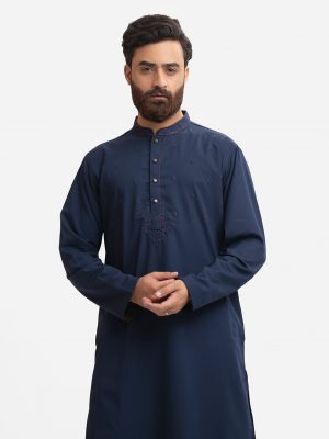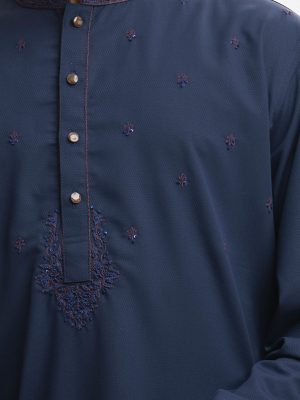 Navy Blue Jacquard Semi Fit Panjabi