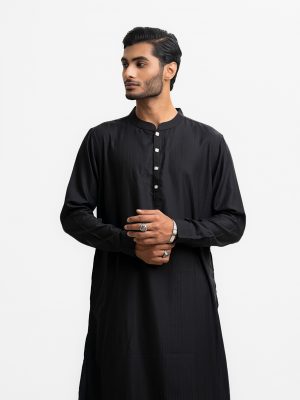 Black Jacquard Semi Fit Panjabi