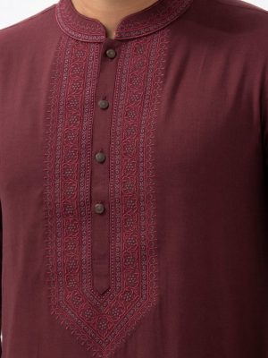 Maroon Cotton Semi Fit Panjabi
