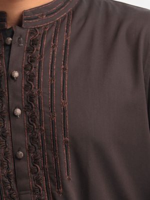 Dark Brown Premium Cotton-blend Panjabi