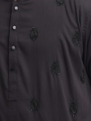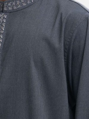 Gray Embroidered Semi Fit Panjabi
