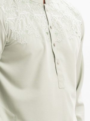 Gray Embroidered Fitted Panjabi