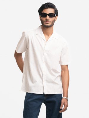 White Cotton Cuban Collar Casual Shirt