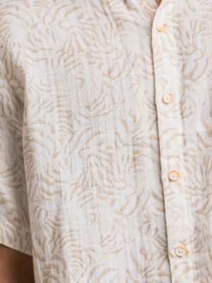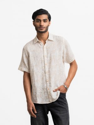 Brown and White Blended Short Sleeve Casual Shirt