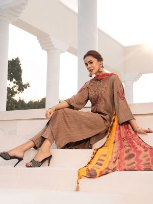 Khaki Viscose Straight Salwar Kameez