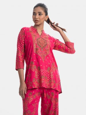 Pink Viscose Top Bottom Set